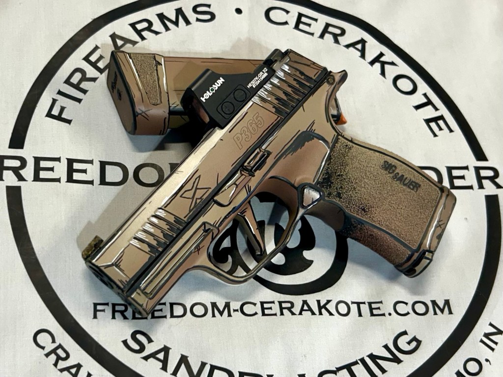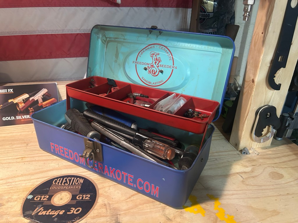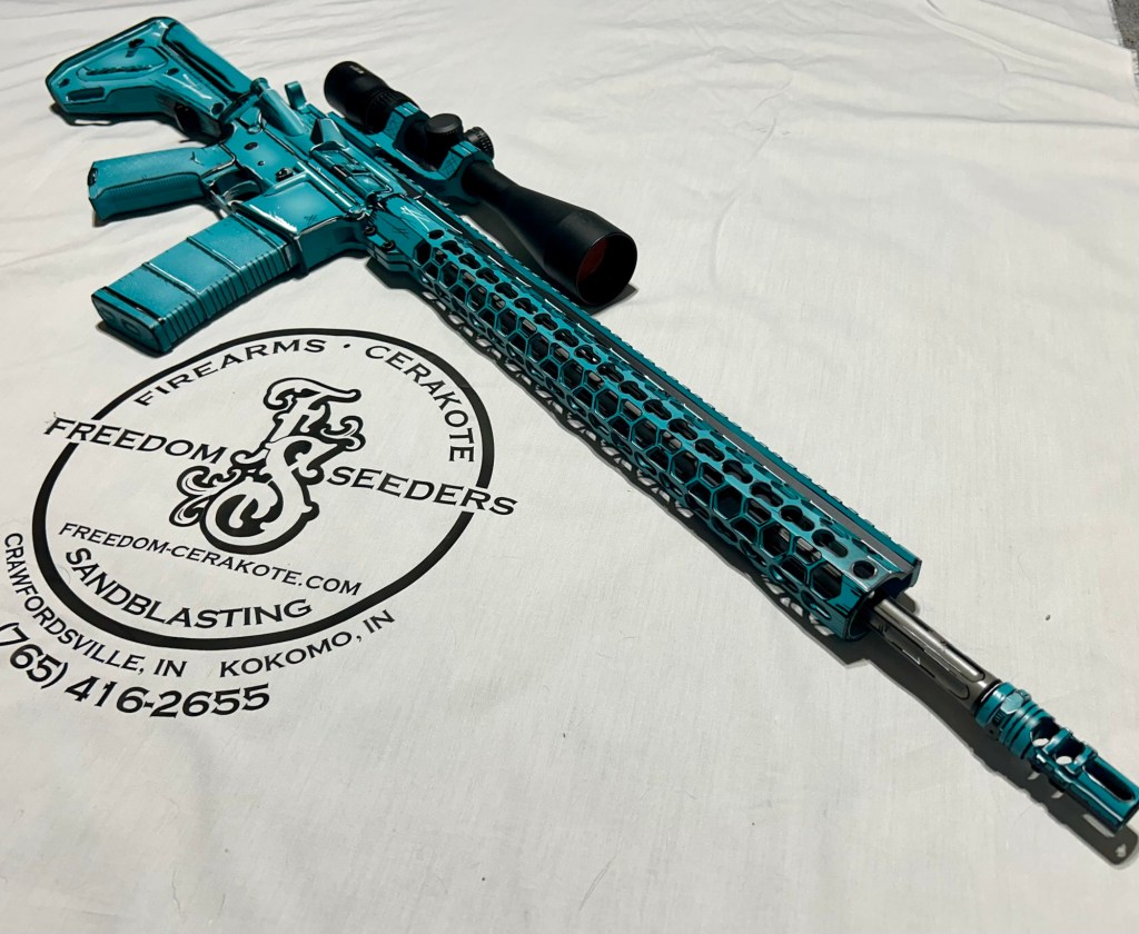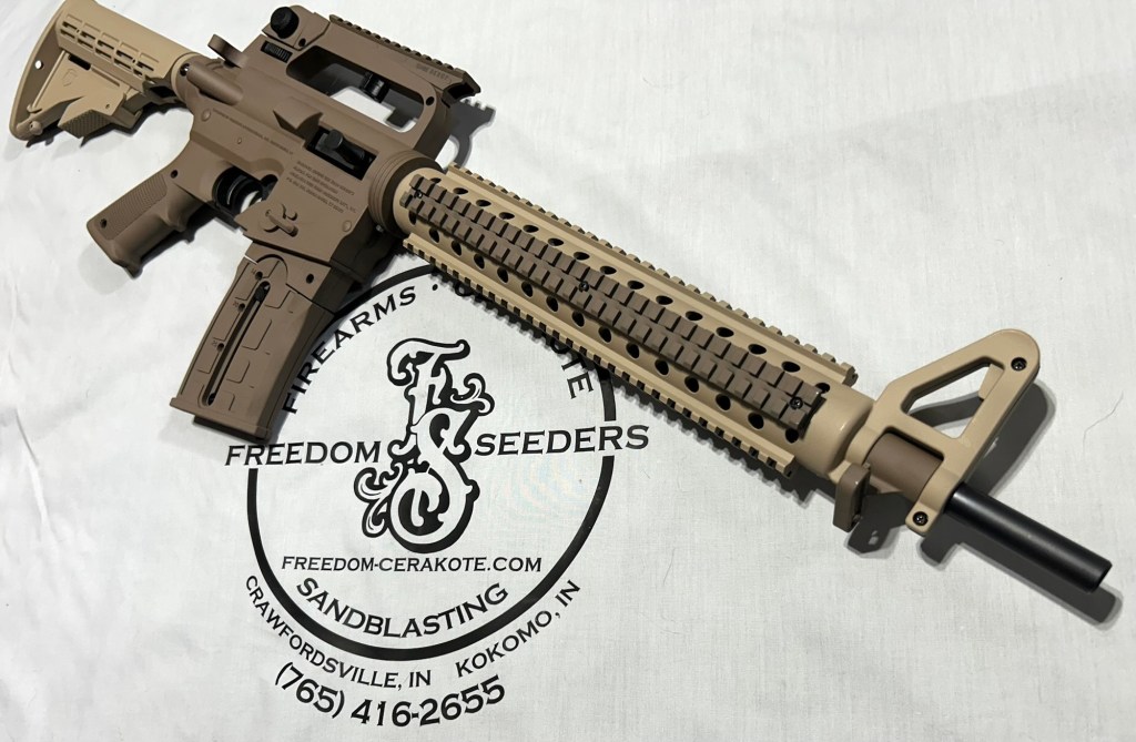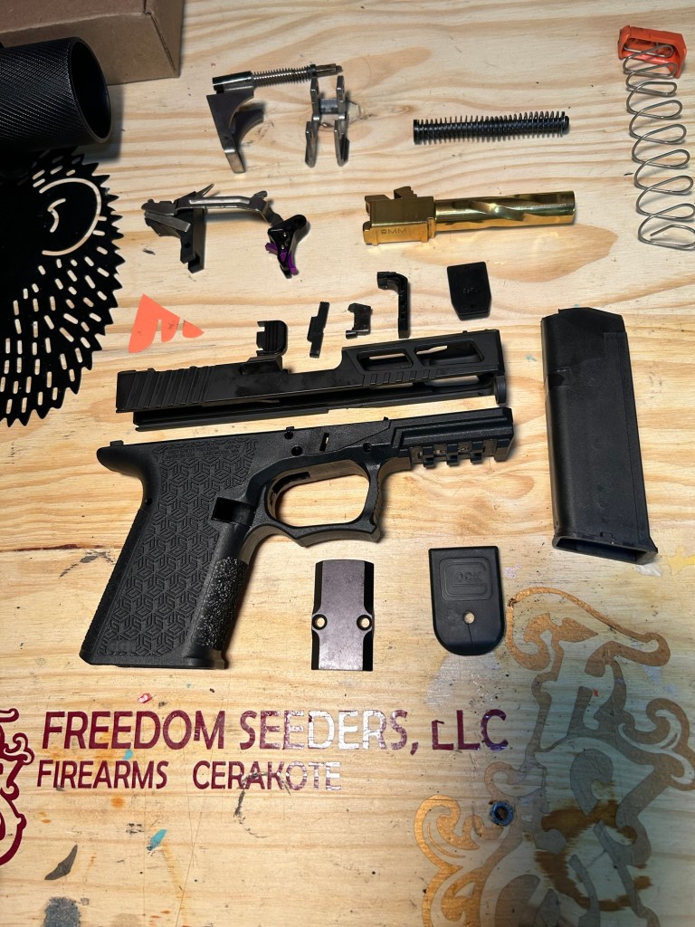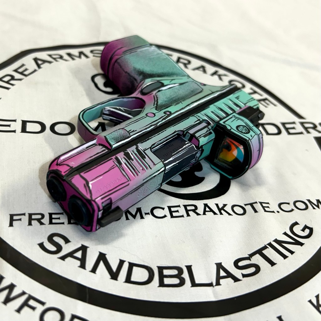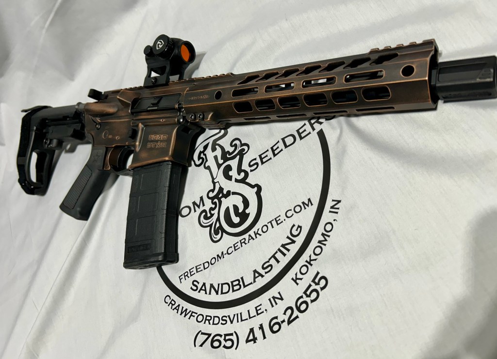 Custom-Mixed Grey/Gold P365XLCel Shade/Comic Book AR Receiver Set + HandguardCel Shade SigFlaked/Glitter coated GlockHighland Ghost Camo AR SetHellcat Cel ShadeChocolate Chip Camo Glock SlideSpringfield Saint Victor Cel ShadeGreen Ghost Camo AR Build SetDirt Bike Components in Titanium + Graphite BlackAR9 backpack build in our winter take on Kuiu Vias camoCel Shade / Borderlands SigsRusty Rossi plinker cleanupUrban Camo 2-tone Ruger SFAR .308PT145 Cel ShadeGlock Slide Assembly. Colors: GunCandy MongooseCivil War Kentucky Rifle full restorationCel Shaded AR-10 LowerMossberg 715TBrowning CitoriP365 XL Macro“Tiger Shark” EPC 9mm buildMossberg 715TP-51 Mustang inspired Springfield XD9Black & white distressed American flag on Taurus G3CCel shaded/manga themed ARUrban camo receiver set, hadndguard, & stock on a Freedom Seeders custom buildTaurus G2S in brushed copper finishCustom AR buildFull P365XL full jobHandguard & receiver set in dark distressed copperGalaxy can-cannonCustom Glock 19 – built by Freedom Seeders Firearms – Colors: GunCandy Mongoose + Smoked BronzeAR9 with receiver and handguard done in 2-tone finishSig P365x-Macro Colors: Robins Egg Blue topped with GunCandy Pegasus on the slide + mags. Frame: Desert Sand base + topped with GunCandy AlpineFreedom Seeders custom buildEPC9 build put together through our FFL location.Sig P365XLA start to finish from raw aluminum, sandblasting, to coating.Glock Slide with Armor Black base topped with GunCandy ViperCustom PMags are the easiest way to make your firearm stand out or quickly distinguish different calibers. Provide your own, or let us provide them new for you!Cerakote Suppressor work? We’ve got some awesome ideas!Options capable of withstanding 1800° are perfect for your go-fast partsAnother hardware restoration project for a historic home. 1904 hardware door hardware brought back to life while preserving the vintage finish of the rest of the home.Hardware restoration? We can help! Laying down some color samples after sandblasting a few pieces for a customer (first 2 pictures). Finally ended on an ‘oil rubbed bronze’ look, using Copper and Graphite BlackAntique restoration and refinishingBefore & After – 20” Wheels in Glacier Gold C-SeriesNever loose your tools again and be seen in low light with Cerakote’s Hi-Vis Orange.Ghost topography stencil work. Colors: Custom mixed grey base, Crushed Aluminum mid-coat, topped with GunCandy Kraken top-coat.Aero Precision receiver and SLR handguard AR9 – Built by Freedom Seeders FirearmsQuite a bit more than Cerakote went into this on. Fire controls stripped repaired and Cerakote in Graphite Black. The original brass was cleaned and polished. Wood Stock repaired and refinished. New ramrod made and stained to match. Barrel stripped, new ramrod thimbles installed. Cerakote in Black Velvet + Graphite BlackFreedom Seeders tumblers available now! Pick one up today, or let us custom make one with your design or logo.A few custom tumbler projects. Dark hand-distressed flag Tumbler, bulk run. Available nowAntique tackle box turned vintage distressed shop tool box