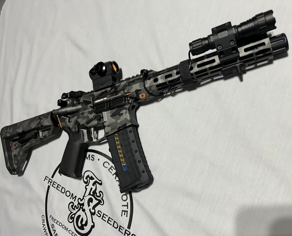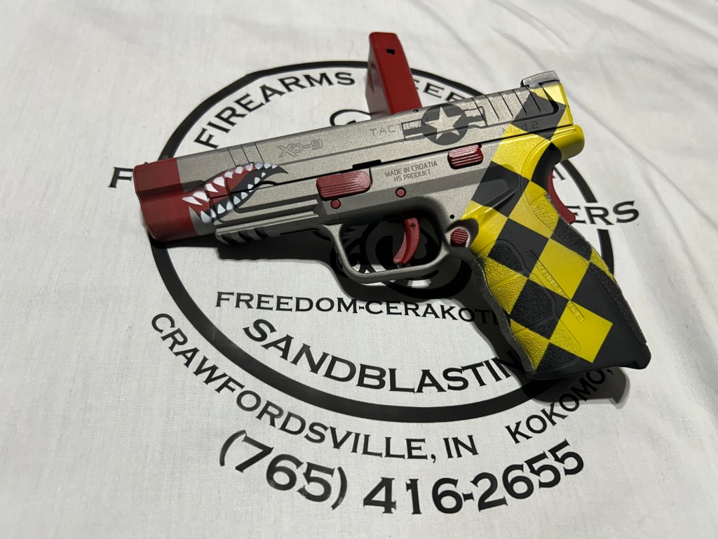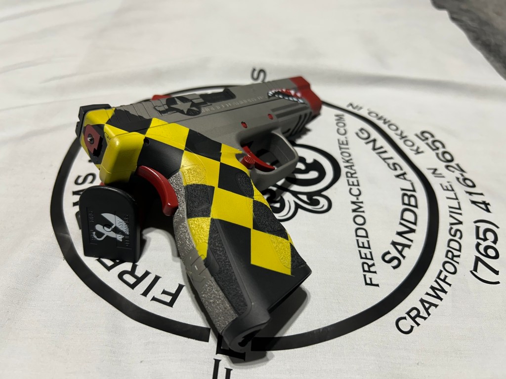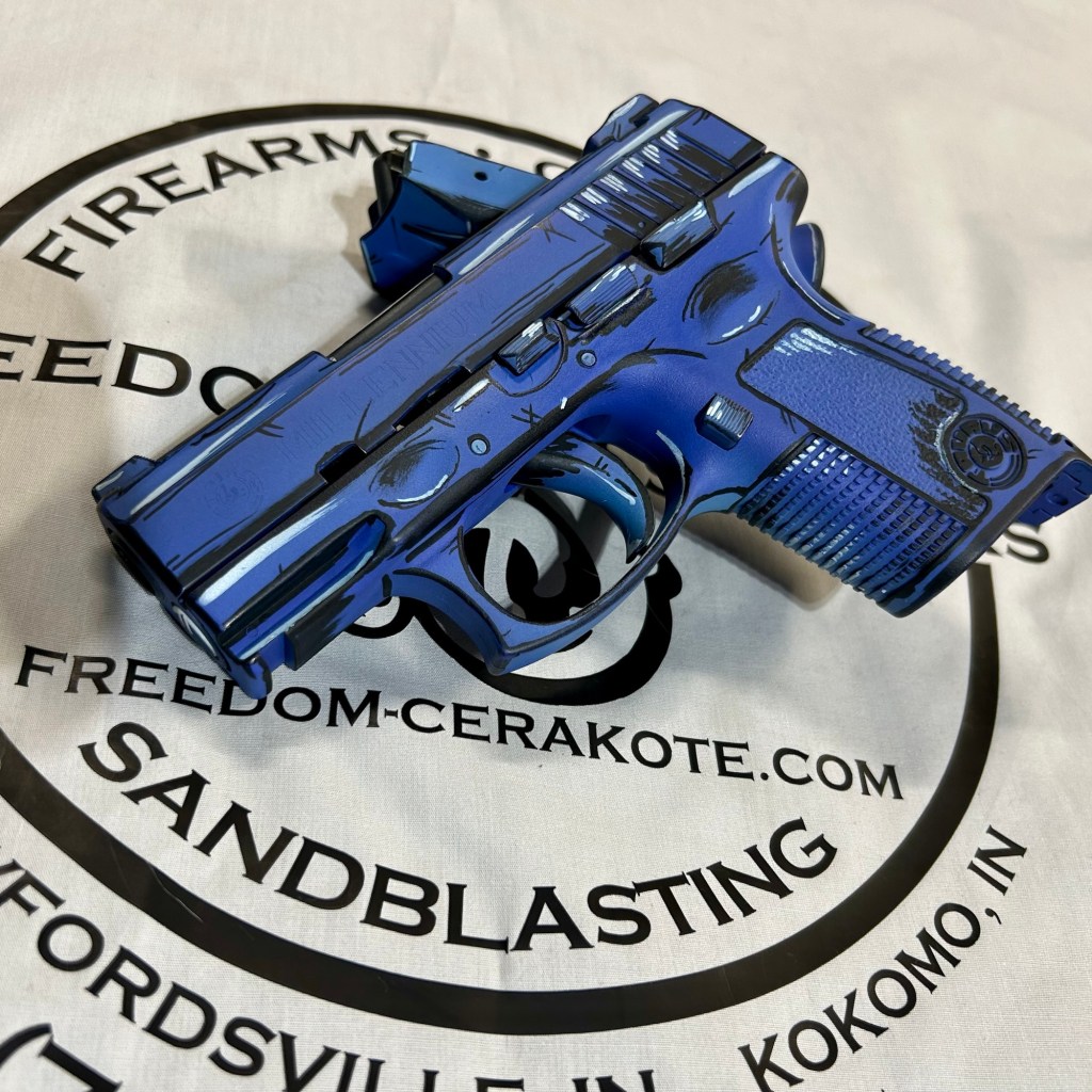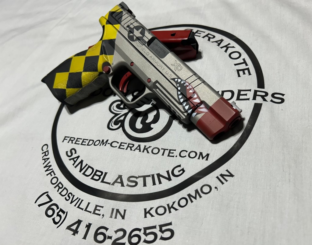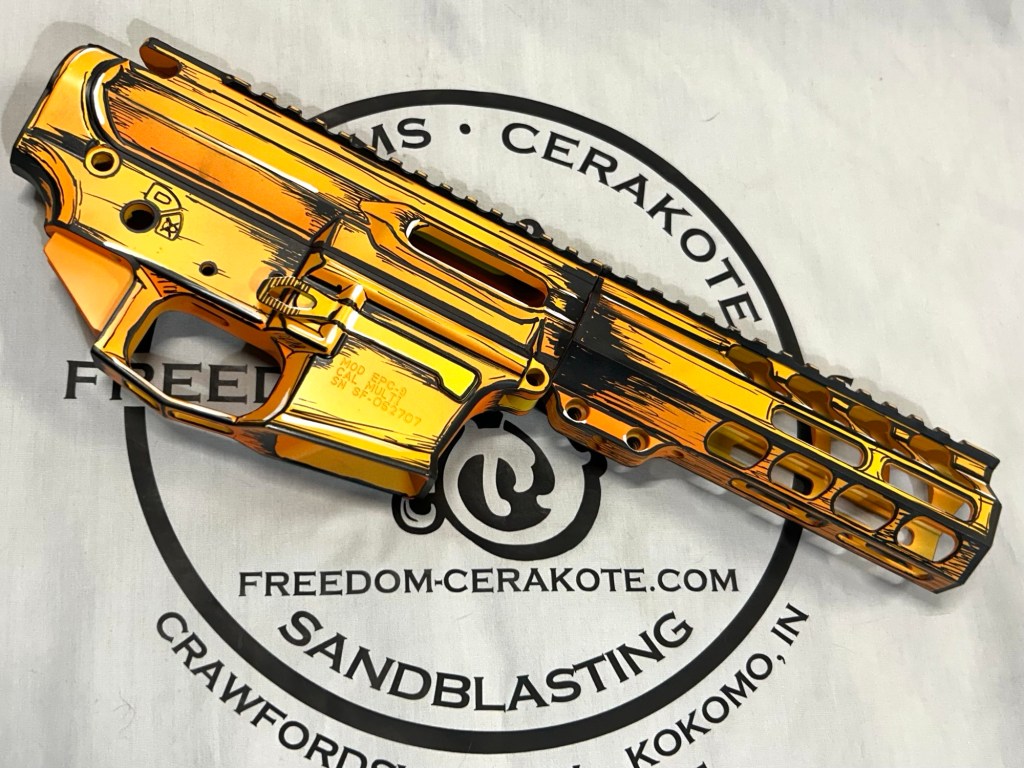 Custom-Mixed Grey/Gold P365XLCel Shade/Comic Book AR Receiver Set + HandguardCel Shade SigFlaked/Glitter coated GlockHighland Ghost Camo AR SetHellcat Cel ShadeChocolate Chip Camo Glock SlideSpringfield Saint Victor Cel ShadeGreen Ghost Camo AR Build SetDirt Bike Components in Titanium + Graphite BlackAR9 backpack build in our winter take on Kuiu Vias camoCel Shade / Borderlands SigsRusty Rossi plinker cleanupUrban Camo 2-tone Ruger SFAR .308PT145 Cel ShadeGlock Slide Assembly. Colors: GunCandy MongooseCivil War Kentucky Rifle full restorationCel Shaded AR-10 LowerMossberg 715TBrowning CitoriP365 XL Macro“Tiger Shark” EPC 9mm buildMossberg 715TP-51 Mustang inspired Springfield XD9Black & white distressed American flag on Taurus G3CCel shaded/manga themed ARUrban camo receiver set, hadndguard, & stock on a Freedom Seeders custom buildTaurus G2S in brushed copper finishCustom AR buildFull P365XL full jobHandguard & receiver set in dark distressed copperGalaxy can-cannonCustom Glock 19 – built by Freedom Seeders Firearms – Colors: GunCandy Mongoose + Smoked BronzeAR9 with receiver and handguard done in 2-tone finishSig P365x-Macro Colors: Robins Egg Blue topped with GunCandy Pegasus on the slide + mags. Frame: Desert Sand base + topped with GunCandy AlpineFreedom Seeders custom buildEPC9 build put together through our FFL location.Sig P365XLA start to finish from raw aluminum, sandblasting, to coating.Glock Slide with Armor Black base topped with GunCandy ViperCustom PMags are the easiest way to make your firearm stand out or quickly distinguish different calibers. Provide your own, or let us provide them new for you!Cerakote Suppressor work? We’ve got some awesome ideas!Options capable of withstanding 1800° are perfect for your go-fast partsAnother hardware restoration project for a historic home. 1904 hardware door hardware brought back to life while preserving the vintage finish of the rest of the home.Hardware restoration? We can help! Laying down some color samples after sandblasting a few pieces for a customer (first 2 pictures). Finally ended on an ‘oil rubbed bronze’ look, using Copper and Graphite BlackAntique restoration and refinishingBefore & After – 20” Wheels in Glacier Gold C-SeriesNever loose your tools again and be seen in low light with Cerakote’s Hi-Vis Orange.Ghost topography stencil work. Colors: Custom mixed grey base, Crushed Aluminum mid-coat, topped with GunCandy Kraken top-coat.Aero Precision receiver and SLR handguard AR9 – Built by Freedom Seeders FirearmsQuite a bit more than Cerakote went into this on. Fire controls stripped repaired and Cerakote in Graphite Black. The original brass was cleaned and polished. Wood Stock repaired and refinished. New ramrod made and stained to match. Barrel stripped, new ramrod thimbles installed. Cerakote in Black Velvet + Graphite BlackFreedom Seeders tumblers available now! Pick one up today, or let us custom make one with your design or logo.A few custom tumbler projects. Dark hand-distressed flag Tumbler, bulk run. Available nowAntique tackle box turned vintage distressed shop tool box