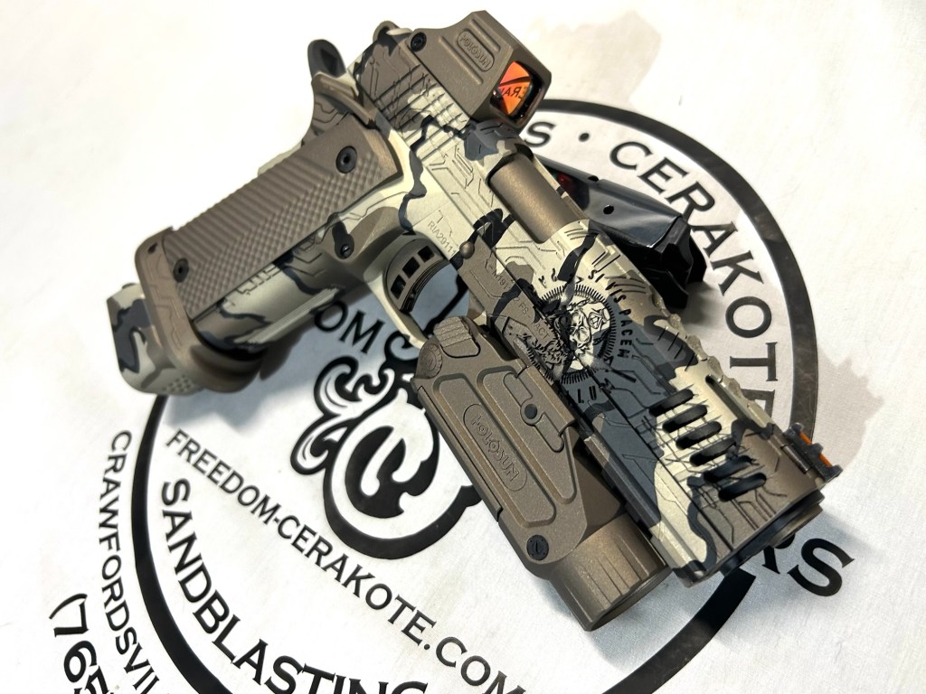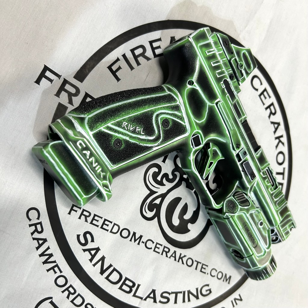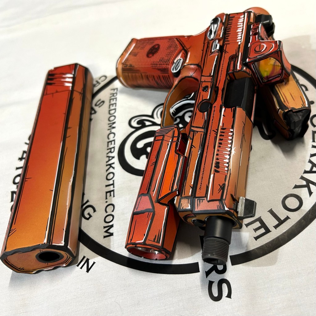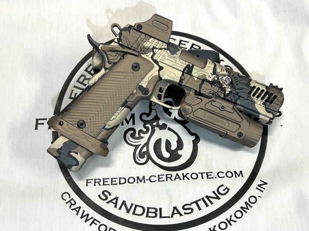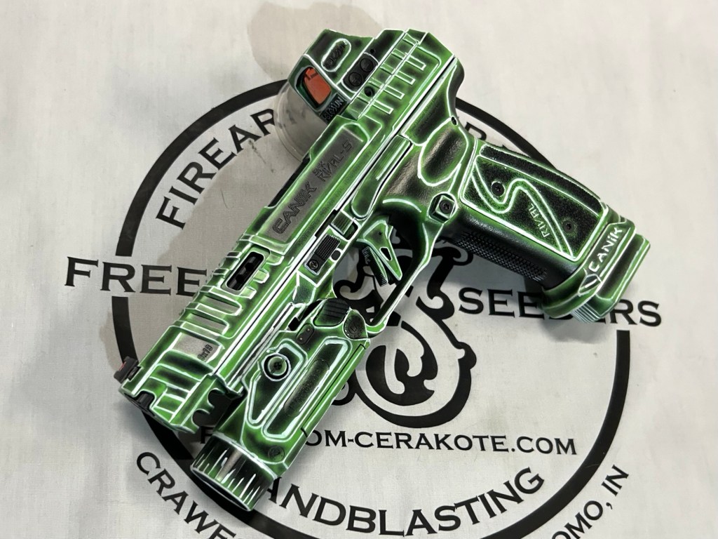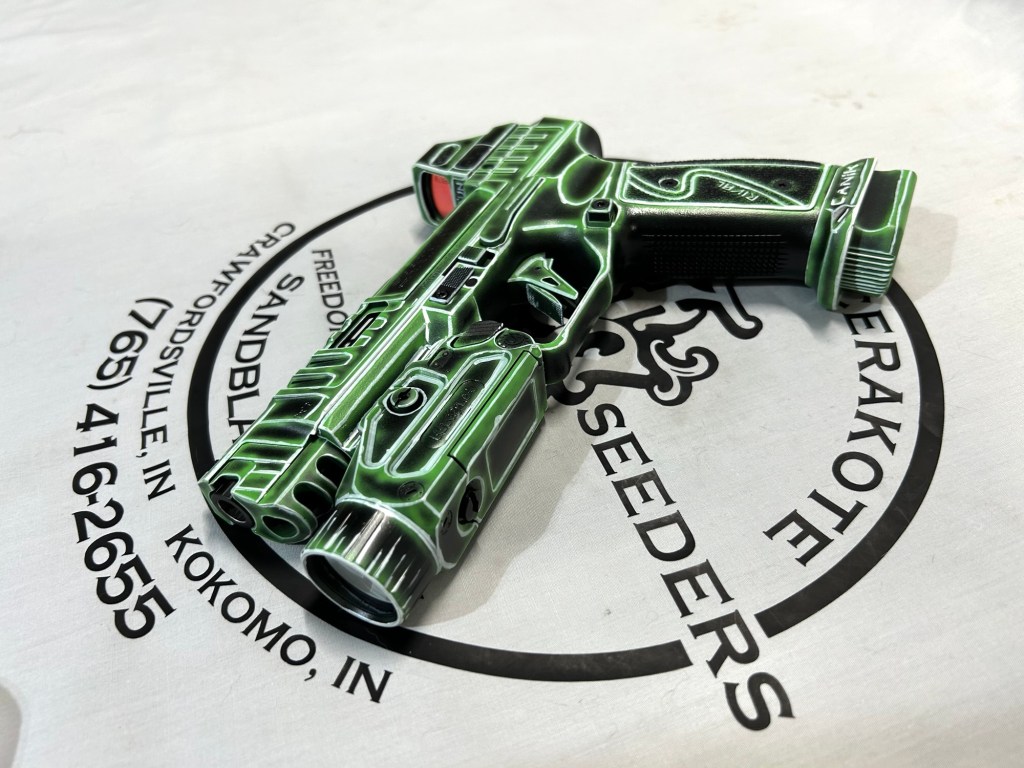 Glittered Custom Glock SlideMetallic Kuiu Vias Camo 1911Hibiscus Print Glock Slide + AccessoriesWhite Cel Shade on a Freedom Seeders AR9 Custom BuildDistressed Gold Desert Eagle Restoration HK CC9 Barrel + Controls in HK Red w/ Black Color Filled LetteringCel Shade Sig P322 + Holosun Red DotNeon Lights/Tron Style Canik SFX Rival + Holosun Optic/LightRefinished Rifle Receiver – yep, we do simple jobs tooBrowning CitoriNeon/Tron style on P365 Macro XCustom-Mixed Grey/Gold P365XLCel Shade/Comic Book AR Receiver Set + HandguardCel Shade SigFlaked/Glitter coated GlockHighland Ghost Camo AR SetHellcat Cel ShadeChocolate Chip Camo Glock SlideSpringfield Saint Victor Cel ShadeDirt Bike Components in Titanium + Graphite BlackAR9 backpack build in our winter take on Kuiu Vias camoCel Shade / Borderlands SigsRusty Rossi plinker cleanupUrban Camo 2-tone Ruger SFAR .308PT145 Cel ShadeGlock Slide Assembly. Colors: GunCandy MongooseCivil War Kentucky Rifle full restorationCel Shaded AR-10 LowerMossberg 715TGreen Ghost Camo AR Build SetP365 XL Macro“Tiger Shark” EPC 9mm buildMossberg 715TP-51 Mustang inspired Springfield XD9Black & white distressed American flag on Taurus G3CCel shaded/manga themed ARUrban camo receiver set, hadndguard, & stock on a Freedom Seeders custom buildTaurus G2S in brushed copper finishCustom AR buildFull P365XL full jobHandguard & receiver set in dark distressed copperGalaxy can-cannonCustom Glock 19 – built by Freedom Seeders Firearms – Colors: GunCandy Mongoose + Smoked BronzeAR9 with receiver and handguard done in 2-tone finishSig P365x-Macro Colors: Robins Egg Blue topped with GunCandy Pegasus on the slide + mags. Frame: Desert Sand base + topped with GunCandy AlpineFreedom Seeders custom buildEPC9 build put together through our FFL location.Sig P365XLA start to finish from raw aluminum, sandblasting, to coating.Glock Slide with Armor Black base topped with GunCandy ViperCustom PMags are the easiest way to make your firearm stand out or quickly distinguish different calibers. Provide your own, or let us provide them new for you!Cerakote Suppressor work? We’ve got some awesome ideas!Options capable of withstanding 1800° are perfect for your go-fast partsAnother hardware restoration project for a historic home. 1904 hardware door hardware brought back to life while preserving the vintage finish of the rest of the home.Hardware restoration? We can help! Laying down some color samples after sandblasting a few pieces for a customer (first 2 pictures). Finally ended on an ‘oil rubbed bronze’ look, using Copper and Graphite BlackAntique restoration and refinishingBefore & After – 20” Wheels in Glacier Gold C-SeriesNever loose your tools again and be seen in low light with Cerakote’s Hi-Vis Orange.Ghost topography stencil work. Colors: Custom mixed grey base, Crushed Aluminum mid-coat, topped with GunCandy Kraken top-coat.Aero Precision receiver and SLR handguard AR9 – Built by Freedom Seeders FirearmsQuite a bit more than Cerakote went into this on. Fire controls stripped repaired and Cerakote in Graphite Black. The original brass was cleaned and polished. Wood Stock repaired and refinished. New ramrod made and stained to match. Barrel stripped, new ramrod thimbles installed. Cerakote in Black Velvet + Graphite BlackFreedom Seeders tumblers available now! Pick one up today, or let us custom make one with your design or logo.A few custom tumbler projects. Dark hand-distressed flag Tumbler, bulk run. Available nowAntique tackle box turned vintage distressed shop tool box