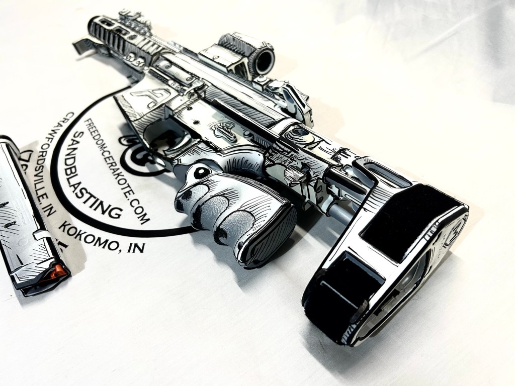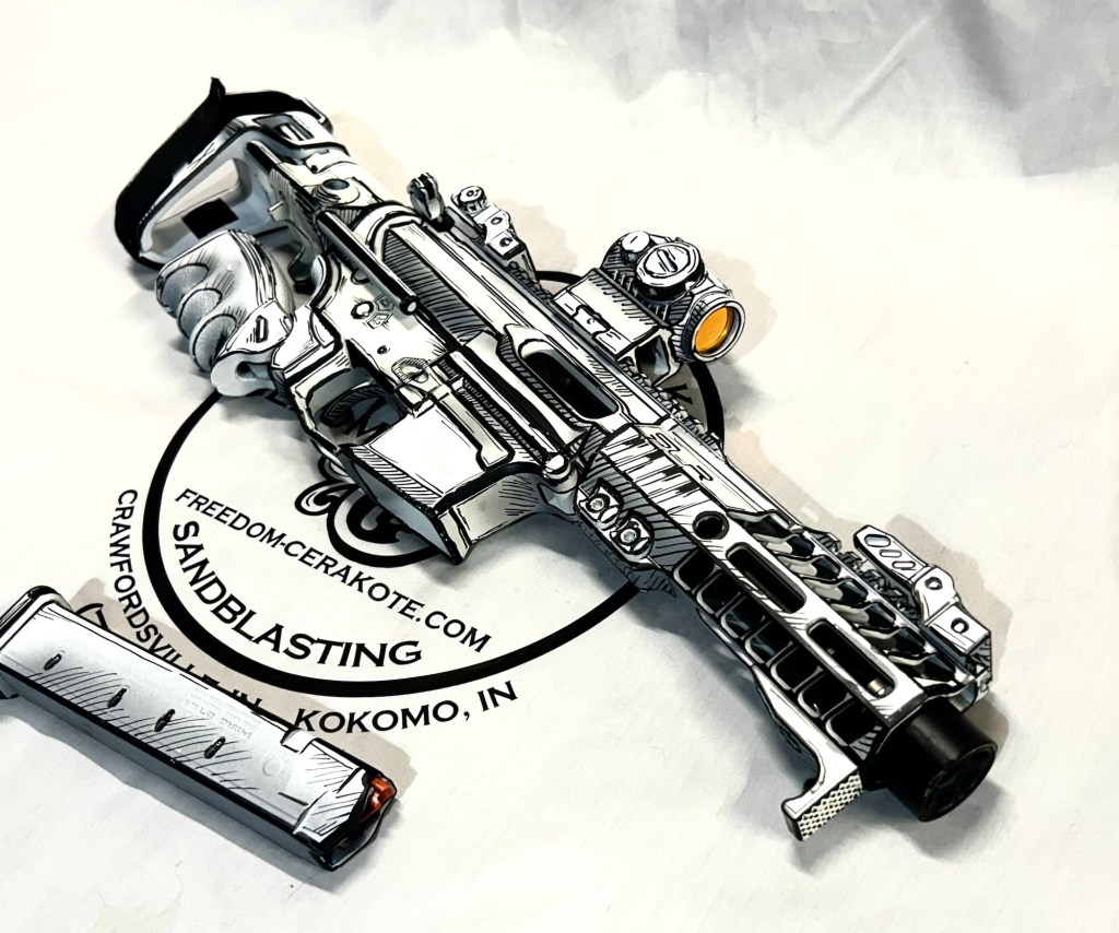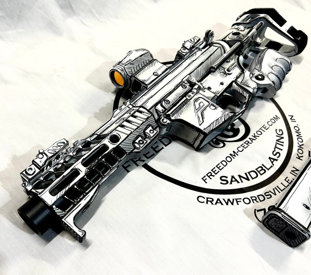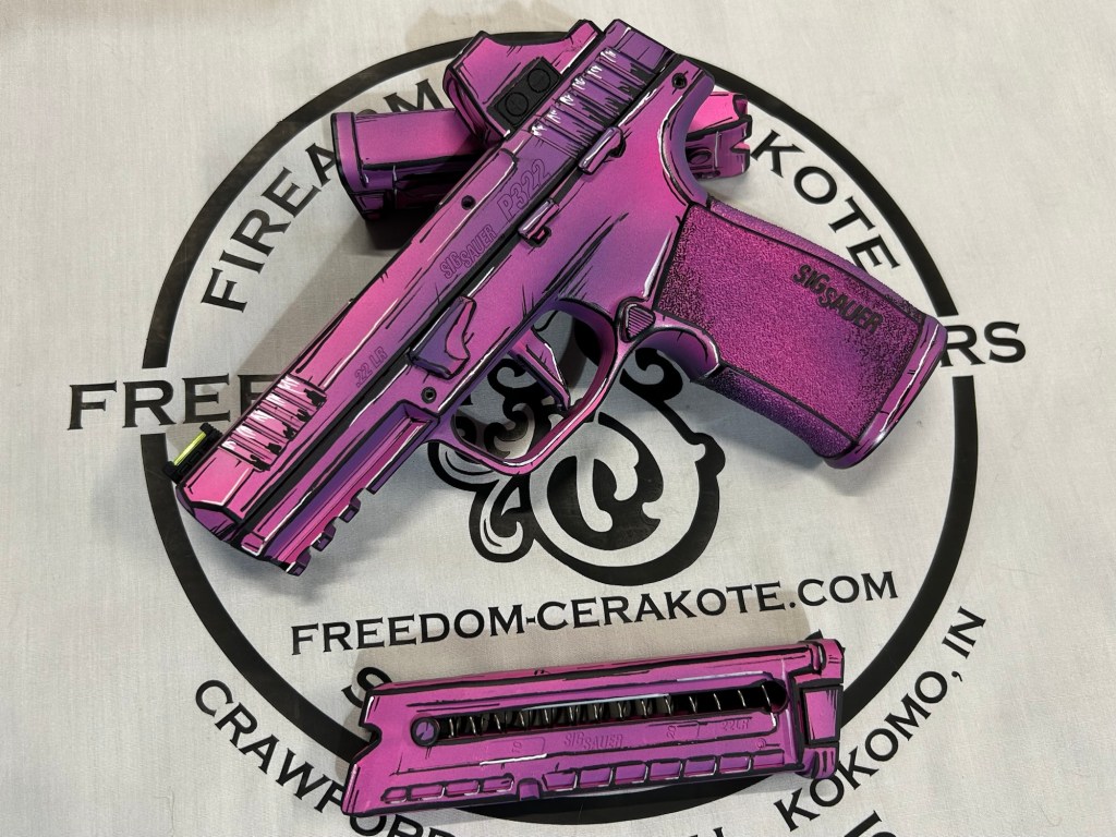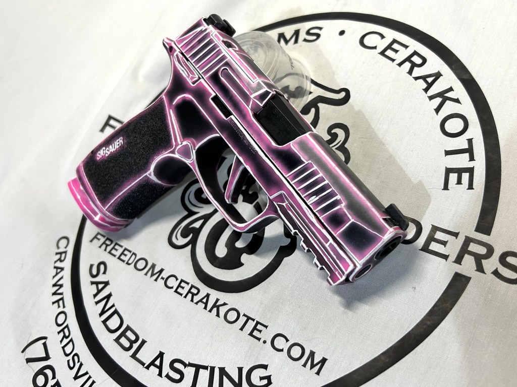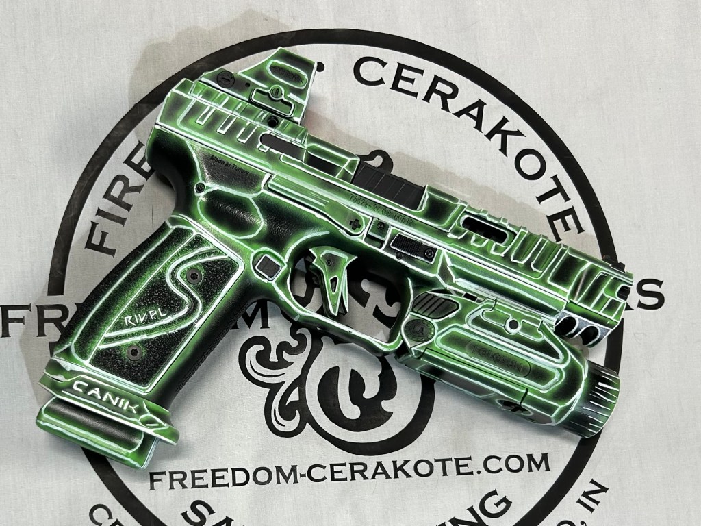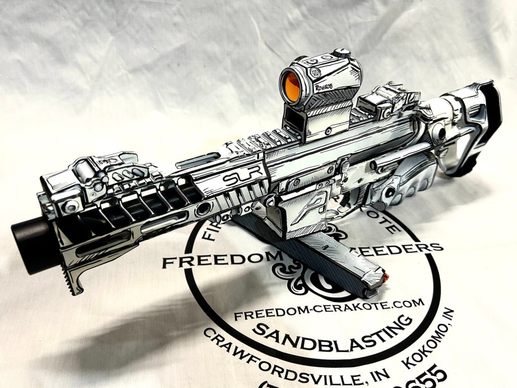 Glittered Custom Glock SlideMetallic Kuiu Vias Camo 1911Hibiscus Print Glock Slide + AccessoriesWhite Cel Shade on a Freedom Seeders AR9 Custom BuildDistressed Gold Desert Eagle Restoration HK CC9 Barrel + Controls in HK Red w/ Black Color Filled LetteringCel Shade Sig P322 + Holosun Red DotNeon Lights/Tron Style Canik SFX Rival + Holosun Optic/LightRefinished Rifle Receiver – yep, we do simple jobs tooBrowning CitoriNeon/Tron style on P365 Macro XCustom-Mixed Grey/Gold P365XLCel Shade/Comic Book AR Receiver Set + HandguardCel Shade SigFlaked/Glitter coated GlockHighland Ghost Camo AR SetHellcat Cel ShadeChocolate Chip Camo Glock SlideSpringfield Saint Victor Cel ShadeDirt Bike Components in Titanium + Graphite BlackAR9 backpack build in our winter take on Kuiu Vias camoCel Shade / Borderlands SigsRusty Rossi plinker cleanupUrban Camo 2-tone Ruger SFAR .308PT145 Cel ShadeGlock Slide Assembly. Colors: GunCandy MongooseCivil War Kentucky Rifle full restorationCel Shaded AR-10 LowerMossberg 715TGreen Ghost Camo AR Build SetP365 XL Macro“Tiger Shark” EPC 9mm buildMossberg 715TP-51 Mustang inspired Springfield XD9Black & white distressed American flag on Taurus G3CCel shaded/manga themed ARUrban camo receiver set, hadndguard, & stock on a Freedom Seeders custom buildTaurus G2S in brushed copper finishCustom AR buildFull P365XL full jobHandguard & receiver set in dark distressed copperGalaxy can-cannonCustom Glock 19 – built by Freedom Seeders Firearms – Colors: GunCandy Mongoose + Smoked BronzeAR9 with receiver and handguard done in 2-tone finishSig P365x-Macro Colors: Robins Egg Blue topped with GunCandy Pegasus on the slide + mags. Frame: Desert Sand base + topped with GunCandy AlpineFreedom Seeders custom buildEPC9 build put together through our FFL location.Sig P365XLA start to finish from raw aluminum, sandblasting, to coating.Glock Slide with Armor Black base topped with GunCandy ViperCustom PMags are the easiest way to make your firearm stand out or quickly distinguish different calibers. Provide your own, or let us provide them new for you!Cerakote Suppressor work? We’ve got some awesome ideas!Options capable of withstanding 1800° are perfect for your go-fast partsAnother hardware restoration project for a historic home. 1904 hardware door hardware brought back to life while preserving the vintage finish of the rest of the home.Hardware restoration? We can help! Laying down some color samples after sandblasting a few pieces for a customer (first 2 pictures). Finally ended on an ‘oil rubbed bronze’ look, using Copper and Graphite BlackAntique restoration and refinishingBefore & After – 20” Wheels in Glacier Gold C-SeriesNever loose your tools again and be seen in low light with Cerakote’s Hi-Vis Orange.Ghost topography stencil work. Colors: Custom mixed grey base, Crushed Aluminum mid-coat, topped with GunCandy Kraken top-coat.Aero Precision receiver and SLR handguard AR9 – Built by Freedom Seeders FirearmsQuite a bit more than Cerakote went into this on. Fire controls stripped repaired and Cerakote in Graphite Black. The original brass was cleaned and polished. Wood Stock repaired and refinished. New ramrod made and stained to match. Barrel stripped, new ramrod thimbles installed. Cerakote in Black Velvet + Graphite BlackFreedom Seeders tumblers available now! Pick one up today, or let us custom make one with your design or logo.A few custom tumbler projects. Dark hand-distressed flag Tumbler, bulk run. Available nowAntique tackle box turned vintage distressed shop tool box