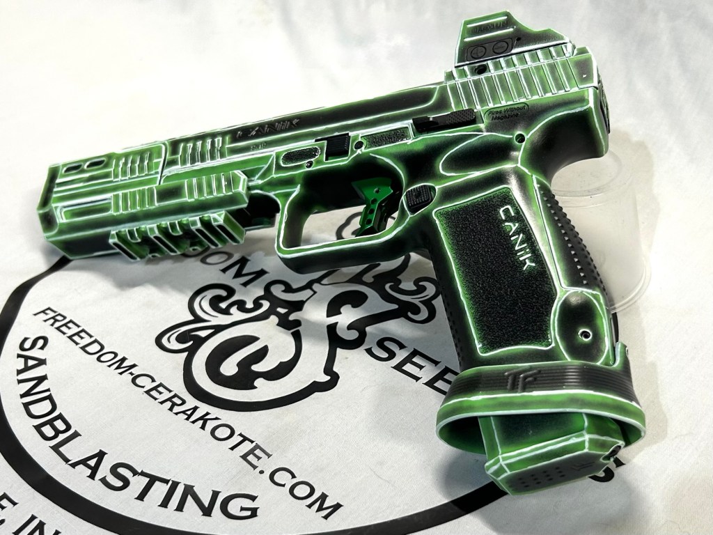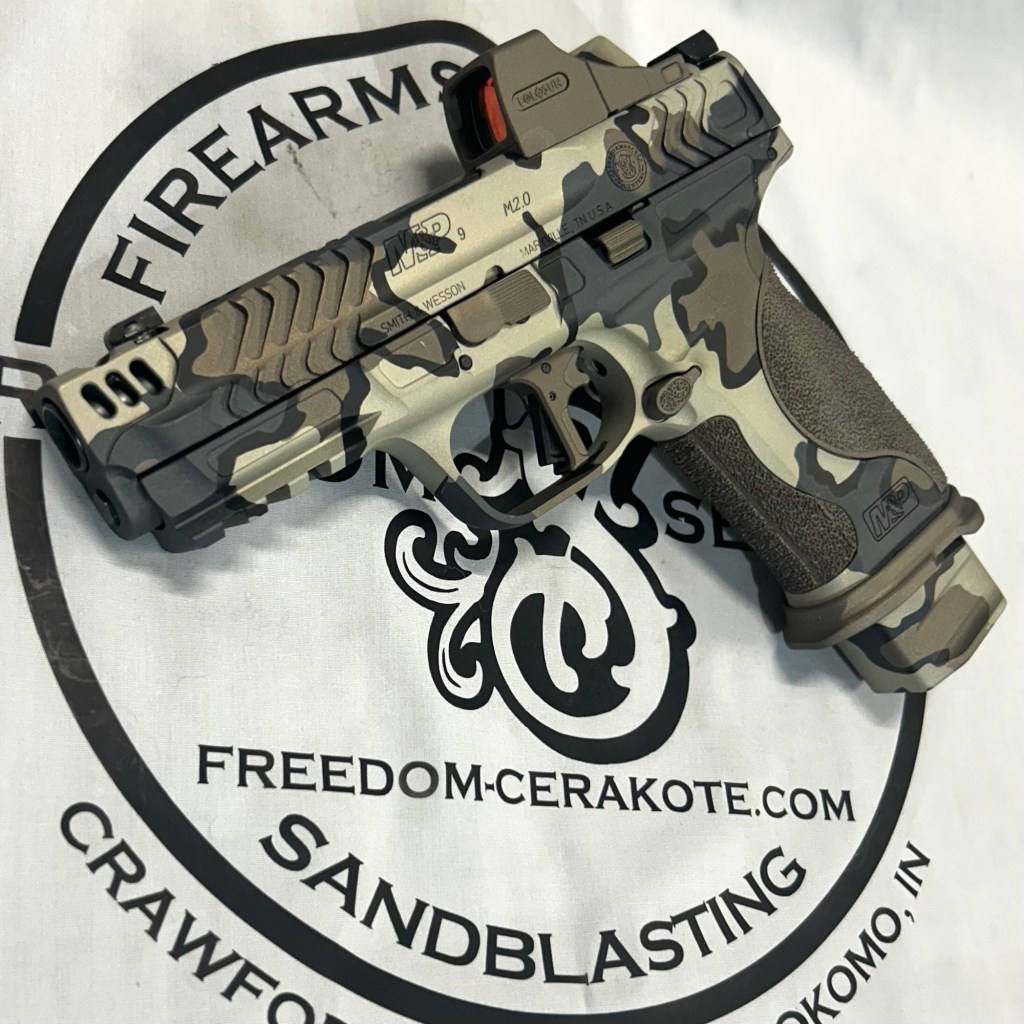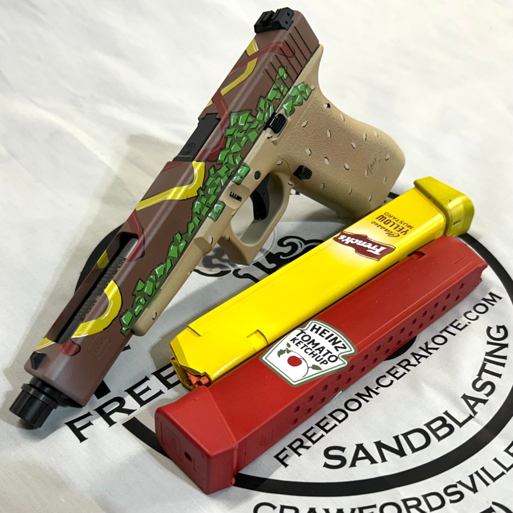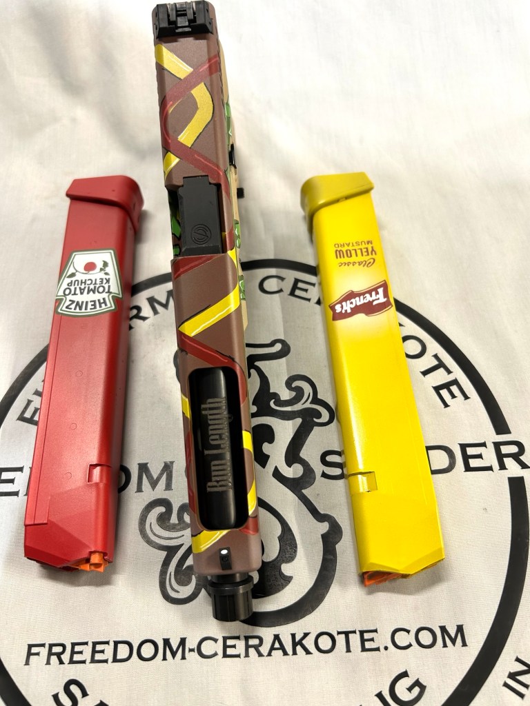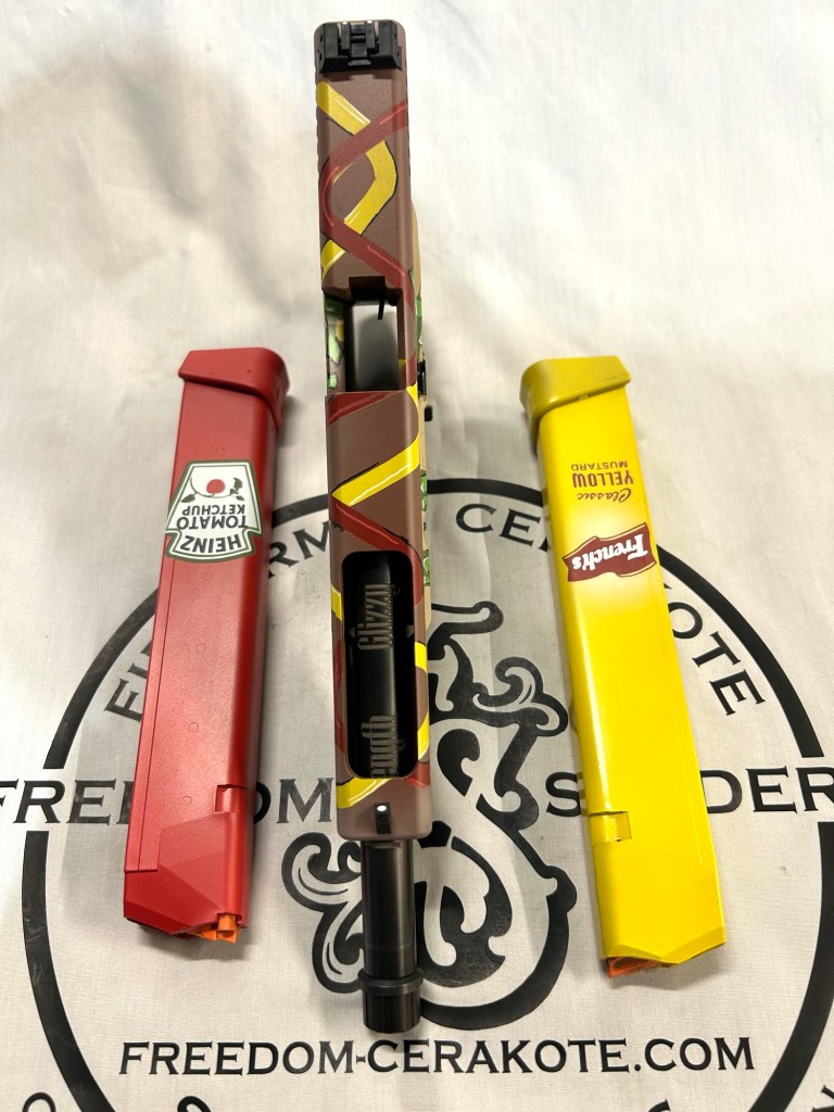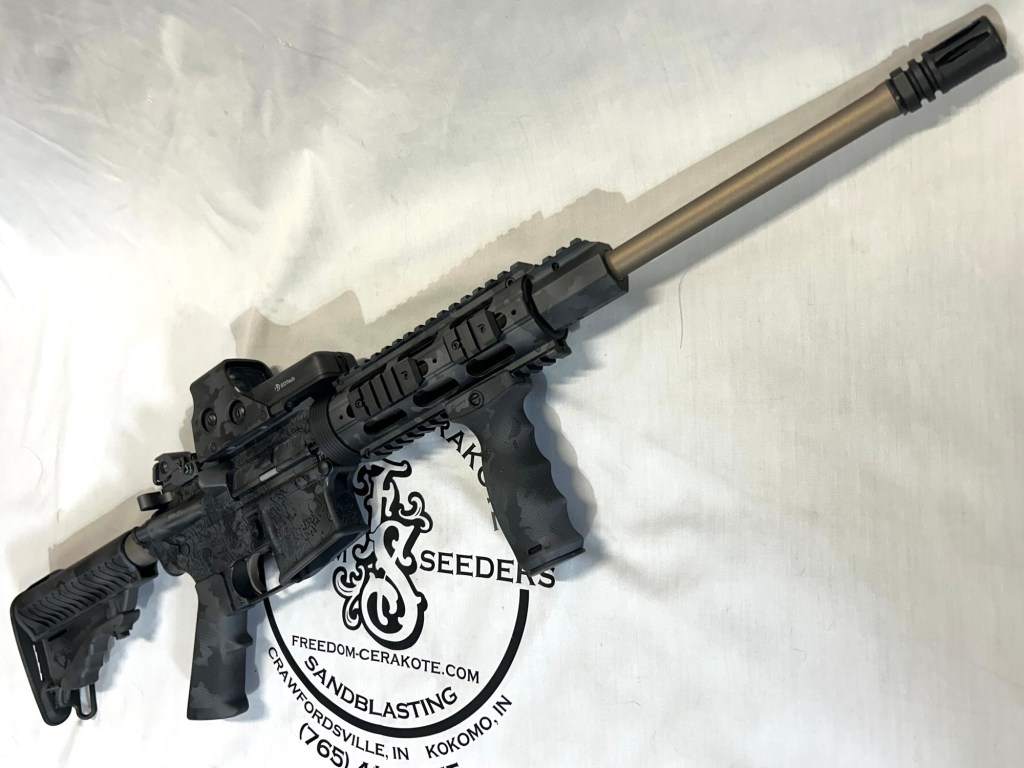 “Glizzy” Glock 17L w/ Ketchup & Mustard Mags Smith & Wesson MP9 in Kuiu Vias CamoNeon Canik TP9Custom mix “Plum Crazy Purple” AR Furniture & Handguard InteriorGhost Camo AR RifleChocolate Chip Camo P365XL.308 Bolt Action Restoration FNX 45 Cel Shade CerakoteCustom Mixed “Smoked Copper” Aero Precision Builders KitGlittered Custom Glock SlideMetallic Kuiu Vias Camo 1911Hibiscus Print Glock Slide + AccessoriesWhite Cel Shade on a Freedom Seeders AR9 Custom BuildDistressed Gold Desert Eagle Restoration HK CC9 Barrel + Controls in HK Red w/ Black Color Filled LetteringCel Shade Sig P322 + Holosun Red DotNeon Lights/Tron Style Canik SFX Rival + Holosun Optic/LightRefinished Rifle Receiver – yep, we do simple jobs tooBrowning CitoriNeon/Tron style on P365 Macro XCustom-Mixed Grey/Gold P365XLCel Shade/Comic Book AR Receiver Set + HandguardCel Shade SigFlaked/Glitter coated GlockHighland Ghost Camo AR SetHellcat Cel ShadeChocolate Chip Camo Glock SlideSpringfield Saint Victor Cel ShadeDirt Bike Components in Titanium + Graphite BlackAR9 backpack build in our winter take on Kuiu Vias camoCel Shade / Borderlands SigsRusty Rossi plinker cleanupUrban Camo 2-tone Ruger SFAR .308PT145 Cel ShadeGlock Slide Assembly. Colors: GunCandy MongooseCivil War Kentucky Rifle full restorationCel Shaded AR-10 LowerMossberg 715TGreen Ghost Camo AR Build SetP365 XL Macro“Tiger Shark” EPC 9mm buildMossberg 715TP-51 Mustang inspired Springfield XD9Black & white distressed American flag on Taurus G3CCel shaded/manga themed ARUrban camo receiver set, hadndguard, & stock on a Freedom Seeders custom buildTaurus G2S in brushed copper finishCustom AR buildFull P365XL full jobHandguard & receiver set in dark distressed copperGalaxy can-cannonCustom Glock 19 – built by Freedom Seeders Firearms – Colors: GunCandy Mongoose + Smoked BronzeAR9 with receiver and handguard done in 2-tone finishSig P365x-Macro Colors: Robins Egg Blue topped with GunCandy Pegasus on the slide + mags. Frame: Desert Sand base + topped with GunCandy AlpineFreedom Seeders custom buildEPC9 build put together through our FFL location.Sig P365XLA start to finish from raw aluminum, sandblasting, to coating.Glock Slide with Armor Black base topped with GunCandy ViperCustom PMags are the easiest way to make your firearm stand out or quickly distinguish different calibers. Provide your own, or let us provide them new for you!Cerakote Suppressor work? We’ve got some awesome ideas!Options capable of withstanding 1800° are perfect for your go-fast partsAnother hardware restoration project for a historic home. 1904 hardware door hardware brought back to life while preserving the vintage finish of the rest of the home.Hardware restoration? We can help! Laying down some color samples after sandblasting a few pieces for a customer (first 2 pictures). Finally ended on an ‘oil rubbed bronze’ look, using Copper and Graphite BlackAntique restoration and refinishingBefore & After – 20” Wheels in Glacier Gold C-SeriesNever loose your tools again and be seen in low light with Cerakote’s Hi-Vis Orange.Ghost topography stencil work. Colors: Custom mixed grey base, Crushed Aluminum mid-coat, topped with GunCandy Kraken top-coat.Aero Precision receiver and SLR handguard AR9 – Built by Freedom Seeders FirearmsQuite a bit more than Cerakote went into this on. Fire controls stripped repaired and Cerakote in Graphite Black. The original brass was cleaned and polished. Wood Stock repaired and refinished. New ramrod made and stained to match. Barrel stripped, new ramrod thimbles installed. Cerakote in Black Velvet + Graphite BlackFreedom Seeders tumblers available now! Pick one up today, or let us custom make one with your design or logo.A few custom tumbler projects. Dark hand-distressed flag Tumbler, bulk run. Available nowAntique tackle box turned vintage distressed shop tool box