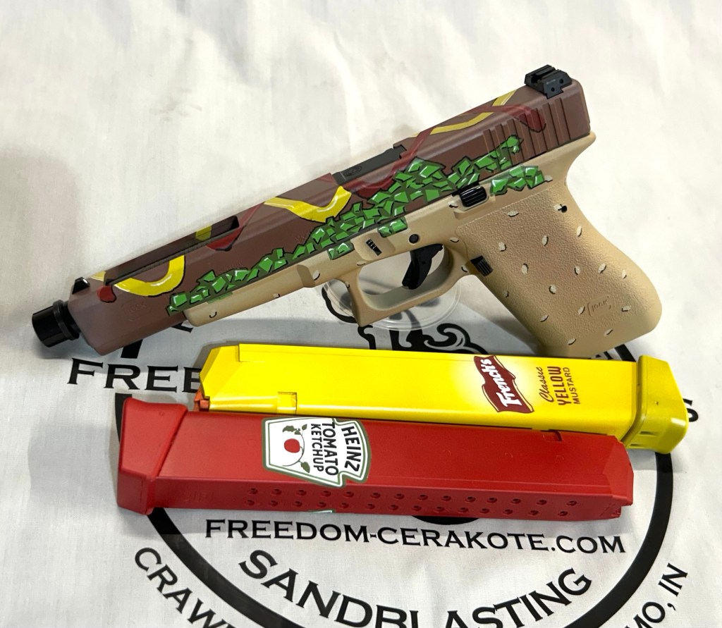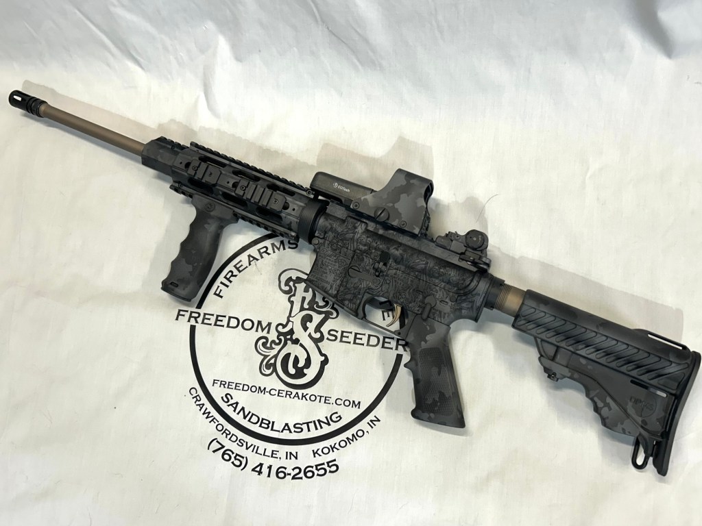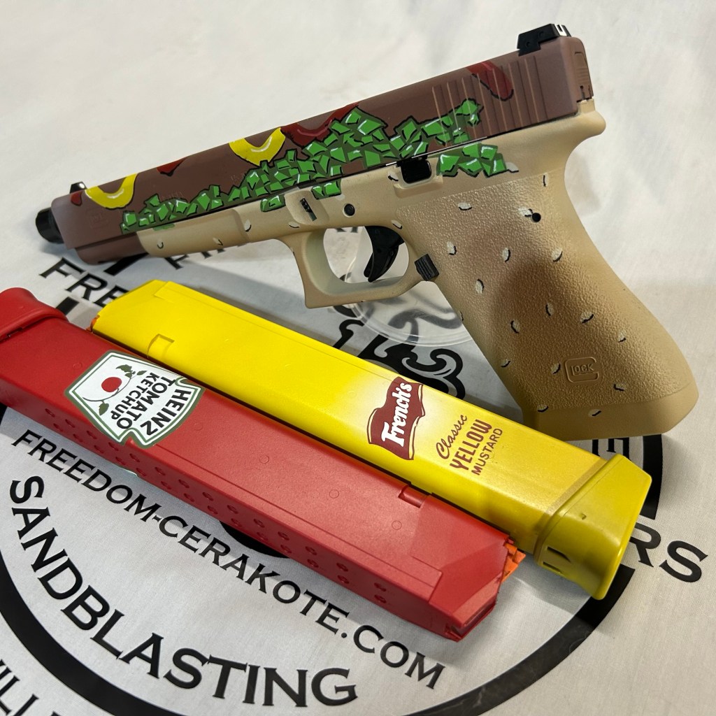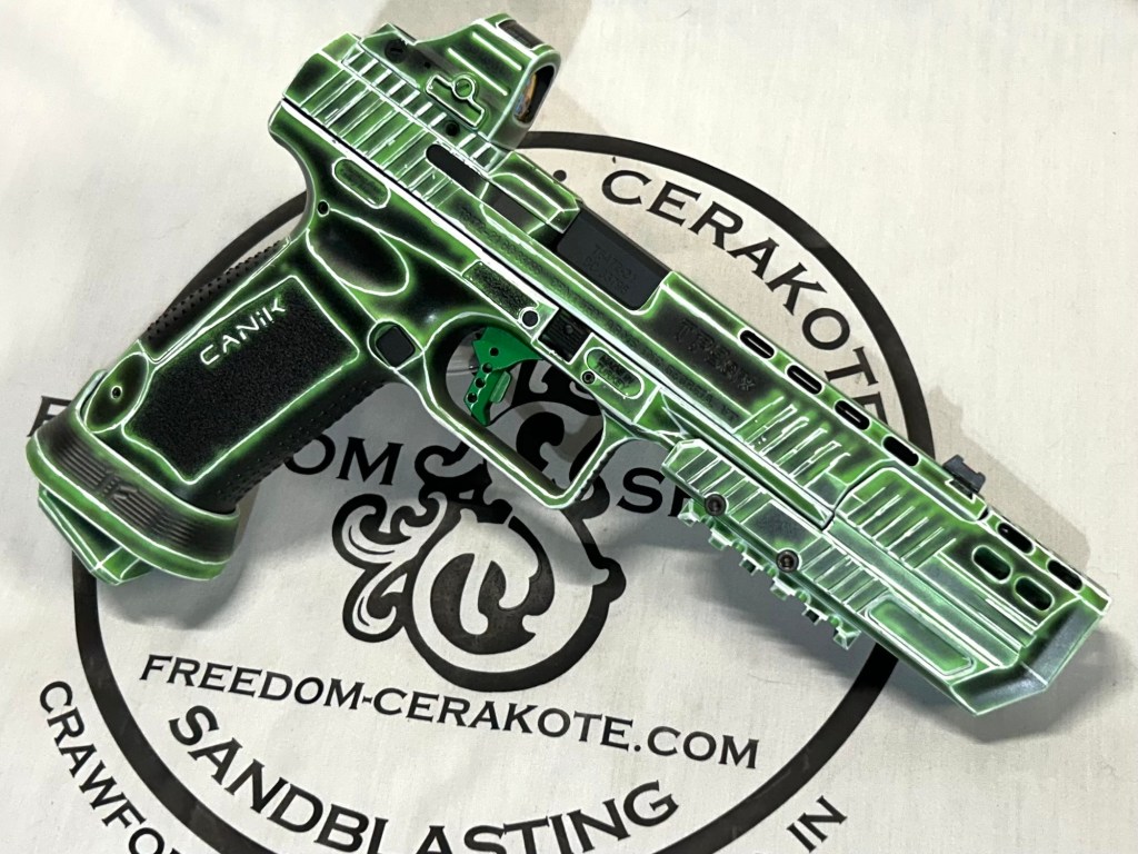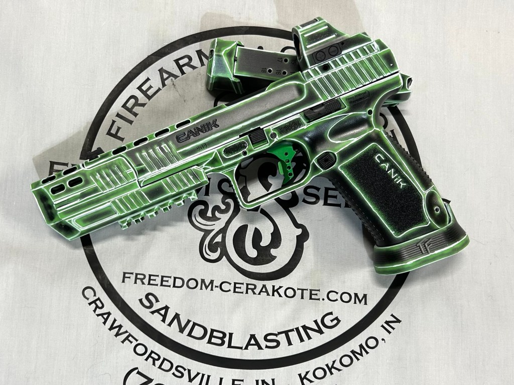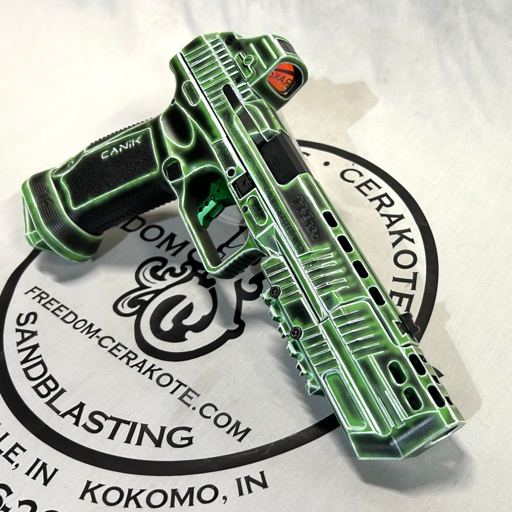 “Glizzy” Glock 17L w/ Ketchup & Mustard Mags Smith & Wesson MP9 in Kuiu Vias CamoNeon Canik TP9Custom mix “Plum Crazy Purple” AR Furniture & Handguard InteriorGhost Camo AR RifleChocolate Chip Camo P365XL.308 Bolt Action Restoration FNX 45 Cel Shade CerakoteCustom Mixed “Smoked Copper” Aero Precision Builders KitGlittered Custom Glock SlideMetallic Kuiu Vias Camo 1911Hibiscus Print Glock Slide + AccessoriesWhite Cel Shade on a Freedom Seeders AR9 Custom BuildDistressed Gold Desert Eagle Restoration HK CC9 Barrel + Controls in HK Red w/ Black Color Filled LetteringCel Shade Sig P322 + Holosun Red DotNeon Lights/Tron Style Canik SFX Rival + Holosun Optic/LightRefinished Rifle Receiver – yep, we do simple jobs tooBrowning CitoriNeon/Tron style on P365 Macro XCustom-Mixed Grey/Gold P365XLCel Shade/Comic Book AR Receiver Set + HandguardCel Shade SigFlaked/Glitter coated GlockHighland Ghost Camo AR SetHellcat Cel ShadeChocolate Chip Camo Glock SlideSpringfield Saint Victor Cel ShadeDirt Bike Components in Titanium + Graphite BlackAR9 backpack build in our winter take on Kuiu Vias camoCel Shade / Borderlands SigsRusty Rossi plinker cleanupUrban Camo 2-tone Ruger SFAR .308PT145 Cel ShadeGlock Slide Assembly. Colors: GunCandy MongooseCivil War Kentucky Rifle full restorationCel Shaded AR-10 LowerMossberg 715TGreen Ghost Camo AR Build SetP365 XL Macro“Tiger Shark” EPC 9mm buildMossberg 715TP-51 Mustang inspired Springfield XD9Black & white distressed American flag on Taurus G3CCel shaded/manga themed ARUrban camo receiver set, hadndguard, & stock on a Freedom Seeders custom buildTaurus G2S in brushed copper finishCustom AR buildFull P365XL full jobHandguard & receiver set in dark distressed copperGalaxy can-cannonCustom Glock 19 – built by Freedom Seeders Firearms – Colors: GunCandy Mongoose + Smoked BronzeAR9 with receiver and handguard done in 2-tone finishSig P365x-Macro Colors: Robins Egg Blue topped with GunCandy Pegasus on the slide + mags. Frame: Desert Sand base + topped with GunCandy AlpineFreedom Seeders custom buildEPC9 build put together through our FFL location.Sig P365XLA start to finish from raw aluminum, sandblasting, to coating.Glock Slide with Armor Black base topped with GunCandy ViperCustom PMags are the easiest way to make your firearm stand out or quickly distinguish different calibers. Provide your own, or let us provide them new for you!Cerakote Suppressor work? We’ve got some awesome ideas!Options capable of withstanding 1800° are perfect for your go-fast partsAnother hardware restoration project for a historic home. 1904 hardware door hardware brought back to life while preserving the vintage finish of the rest of the home.Hardware restoration? We can help! Laying down some color samples after sandblasting a few pieces for a customer (first 2 pictures). Finally ended on an ‘oil rubbed bronze’ look, using Copper and Graphite BlackAntique restoration and refinishingBefore & After – 20” Wheels in Glacier Gold C-SeriesNever loose your tools again and be seen in low light with Cerakote’s Hi-Vis Orange.Ghost topography stencil work. Colors: Custom mixed grey base, Crushed Aluminum mid-coat, topped with GunCandy Kraken top-coat.Aero Precision receiver and SLR handguard AR9 – Built by Freedom Seeders FirearmsQuite a bit more than Cerakote went into this on. Fire controls stripped repaired and Cerakote in Graphite Black. The original brass was cleaned and polished. Wood Stock repaired and refinished. New ramrod made and stained to match. Barrel stripped, new ramrod thimbles installed. Cerakote in Black Velvet + Graphite BlackFreedom Seeders tumblers available now! Pick one up today, or let us custom make one with your design or logo.A few custom tumbler projects. Dark hand-distressed flag Tumbler, bulk run. Available nowAntique tackle box turned vintage distressed shop tool box